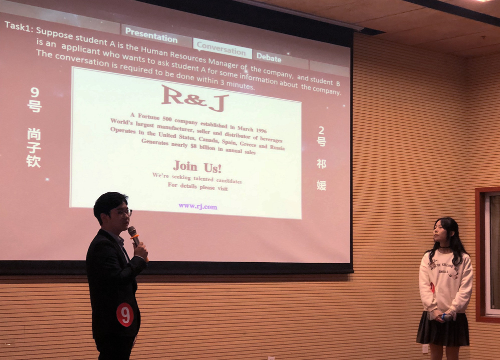 赛场上,选手们以娴熟的口语技巧、自然大方的台风和出色的临场发挥展现了青春的风采和良好的英语素养,赢得了在场师生的阵阵掌声。比赛过程包括图表描述、情景对话、激情辩论三个环节,经过2个多小时的激烈角逐,财经学院尚子钦荣获一等奖;汽车学院李佳宝、师范学院蒲浩、医学院陈咏琪荣获二等奖;师范学院黄颖、医学院祁媛、蒋静楠、舒然荣获三等奖;师范学院杨雪等6名同学荣获优秀奖。