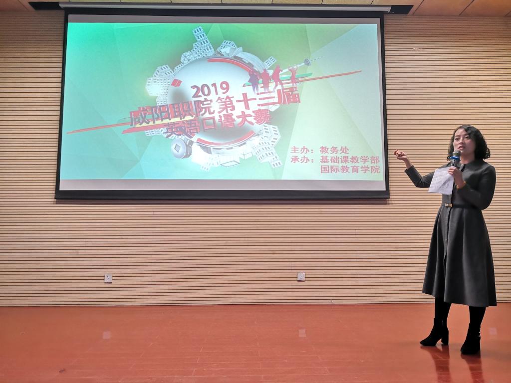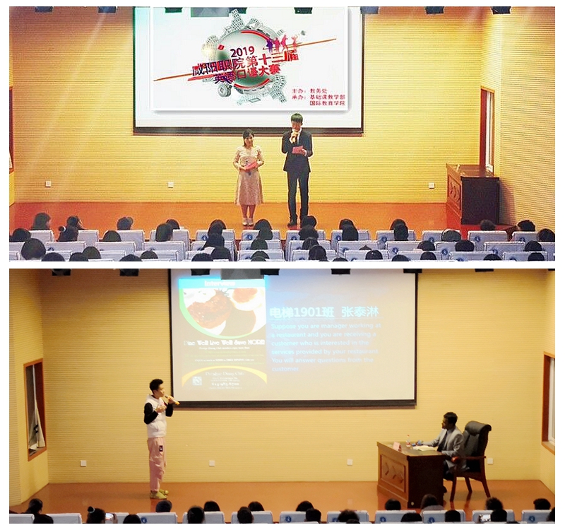 11月26日,咸阳职院2019年第十三届英语口语大赛在图书馆仪祉堂举行。来自各二级学院的14名同学参加决赛。全院500多名学生及全部留学生现场观摩了本次比赛。