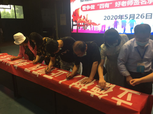 为进一步推进基础部精神文明建设和全国文明校园创建工作,按照《咸阳职业技术学院创建全国文明校园实施方案》相关要求,2020年5月26日下午基础部(国教院)在艺术楼演播厅召开文明院部创建推进会暨争做“四有”好老师签名承诺活动,会议由基础部党总支书记王晓辉同志主持,全体教职工参加了会议。