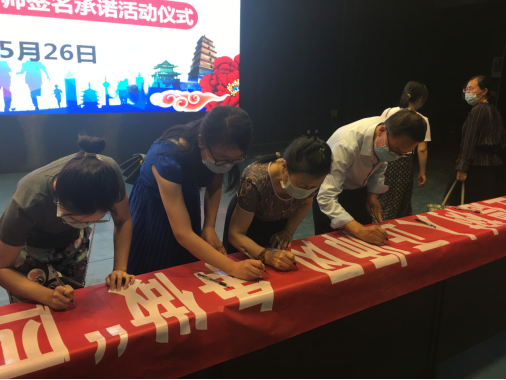 会后,全体管理干部、大学语文教研室、高等数学教研室、大学英语教研室全体教职工分别进行了现场签名承诺活动。