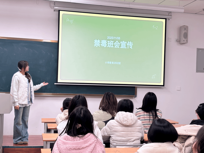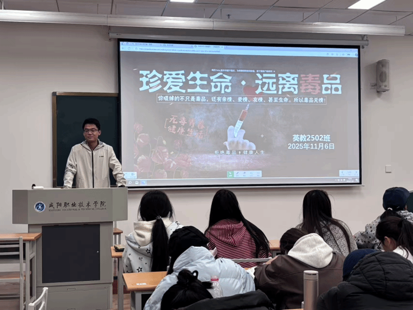 为进一步加强学生禁毒防毒意识,普及毒品危害知识,引导青年学子树立正确的生命观和健康观,2025年11月6日晚,咸阳职业技术学院小学教育学院各班级利用晚自习时间,集中开展禁毒主题班会,以沉浸式学习筑牢青春防毒墙。