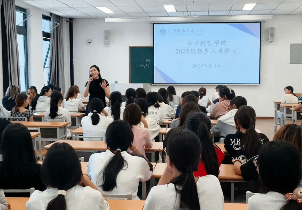 金秋九月,丹桂飘香,咸阳职业技术学院小学教育学院2025级新生怀揣“三尺讲台梦”憧憬入校。9月13日下午,学院组织2025级新生辅导员在七号教学楼各班教室开展新生入学教育班会,将思想引领、行为规范、安全守护与专业认知融合,为“准小学教师”上好开学第一课。